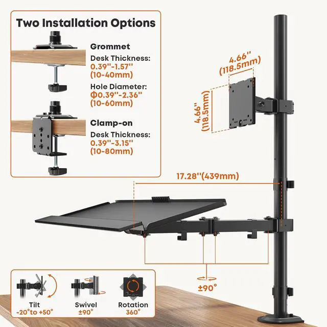 Ultimate Viewing Comfort: Enjoy total control with -20° to +50° tilt, 180° swivel, and 360° rotation for both the monitor and keyboard. Find a ergonomic position for glare-free viewing and relaxed typing to stay comfortable and boost productivity.