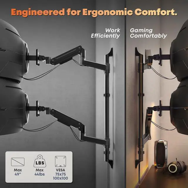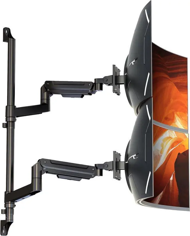 Designed for 2 Ultrawide MonitorsThis wall-mounted long-arm dual monitor mount is engineered to confidently handle todays ultrawide and curved monitors.Featuring a reinforced dual-arm structure and an upgraded tilt mechanism, it can securely support monitors up to 20KG. Perfect for mounting your 17"-49" display directly on the wall, Whether its your ultrawide office display or an immersive curved monitor, this mount offers strong support and ensures a stable, secure installation. Note: For monitors without VESA holes, a VESA adapter is required