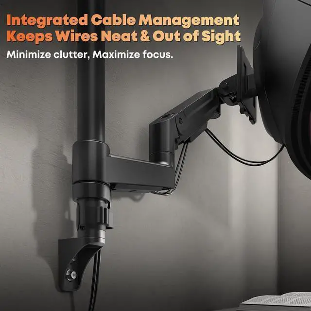 Free Up Desk SpaceOnce installed, your monitor will be securely mounted on the wall, immediately freeing up valuable desk space. Say goodbye to bulky monitors taking up your desk area, and enjoy a cleaner, more organized workspace that enhances productivity. When not in use, the arms can retract to just 8.38CM from the wall, making it ideal for tight spaces. The integrated cable management system neatly organizes and hides wires, keeping your desk clutter-free and providing a more professional visual experience