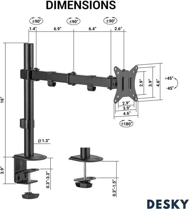 Desky Single Eco Monitor Mount Desky Single Eco Monitor Mount Provides an Ergonomic Workspace Solution hero-video How do I know if the Desky Single Eco Monitor Mount will fit my monitor?