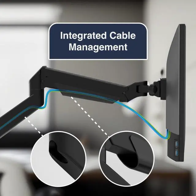 INTEGRATED CABLE MANAGEMENT Maintain a tidy workspace with our built-in cable management system, keeping cords organized and concealed around your double monitor stand for desk.
