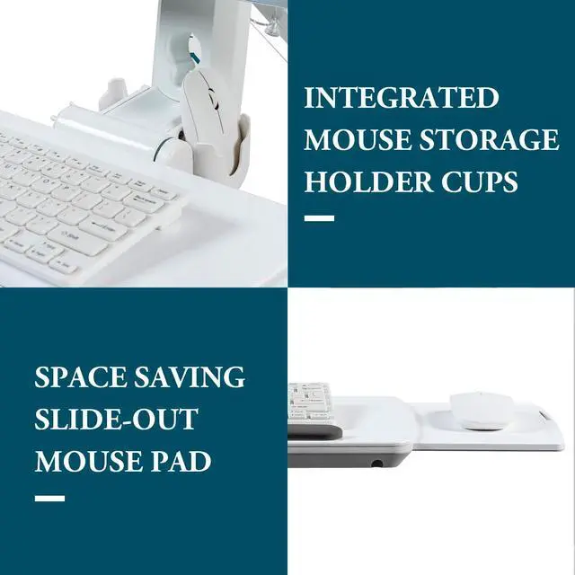 • Featuring a convenient fold-up keyboard tray (4 lb. maximum load), pull-out mouse trays for right or left-handed users, dual mouse holder slots, and a magnetic wrist rest for ergonomic support