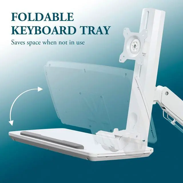 MyGift Wall Mounted White Metal Medical Grade Monitor Screen Workstation with Height Adjustable Arm, Keyboard & Extension Tray & Mouse Holder for Healthcare and Dental Clinics, Fits up to 35 Monitor