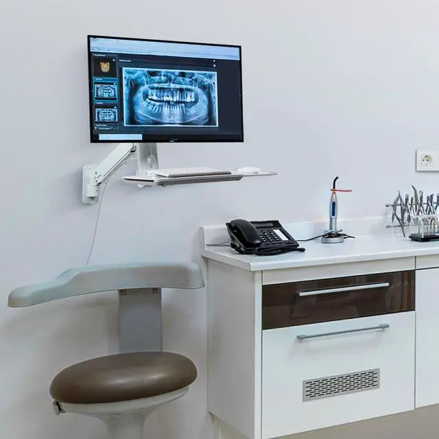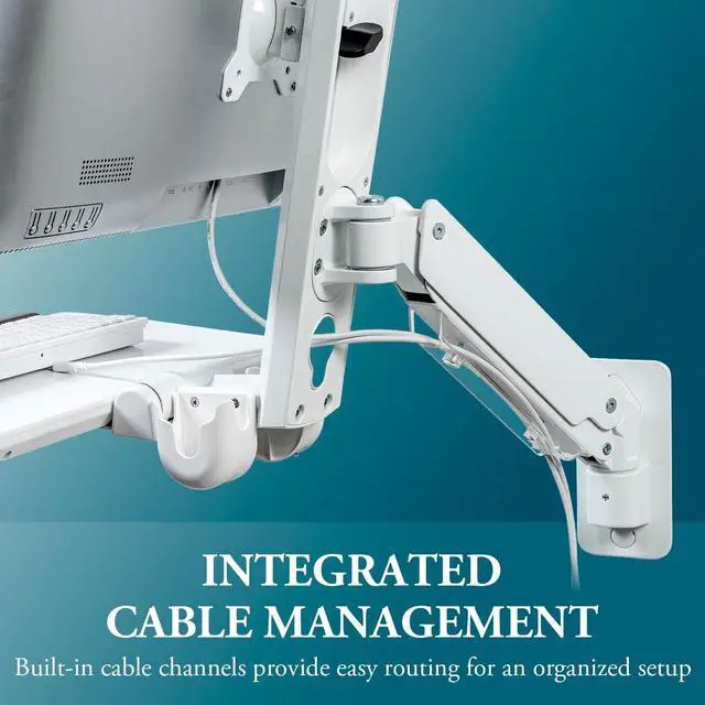 • Fit a single 17 to 35-inch flat screen on this fully adjustable wall mounted computer workstation for medical offices or dental clinics **Assembly required**