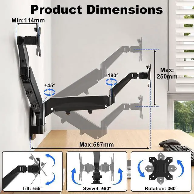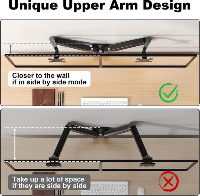 Free Up Your Desk Space Completely. Adjustable Height for a More Comfortableand Healthier Work Setup. 1Fully Adjustable2Flexible Adjustment3Cable Management Compatible with most brands and a wide range of monitor sizes.