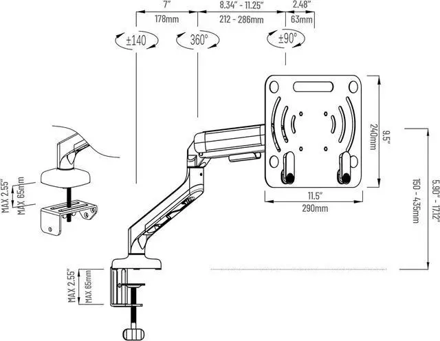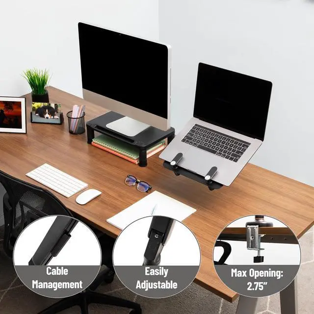 Free up desk space and enhance your viewing experience with the Mind Reader Counterbalance Gas Spring Desk Mount. Designed to support laptops or monitors from 11.6" to 17.3", this adjustable mount offers flexible positioning with 180° rotation, ±180° swivel, and ±65° tilt for optimal comfort and ergonomics throughout your workday.