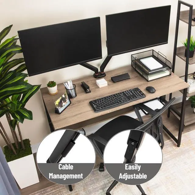 Ergonomic Viewing: Dual monitor arms improve posture and reduce neck strain by raising screens to eye level