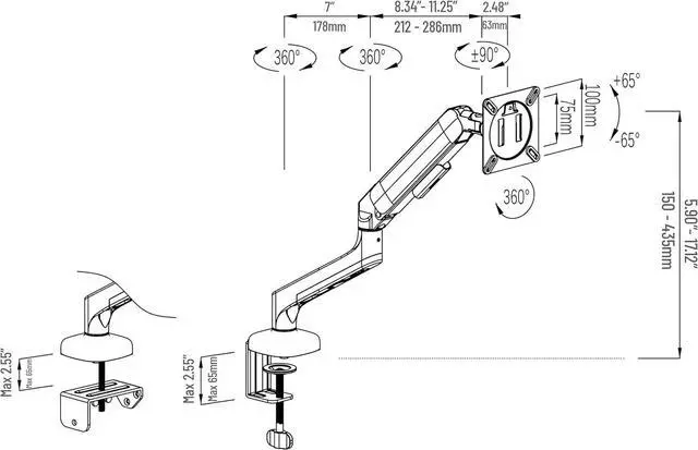 VESA Compatibility: Fits 75x75 and 100x100 mm mounting patterns for most 13"32" monitors