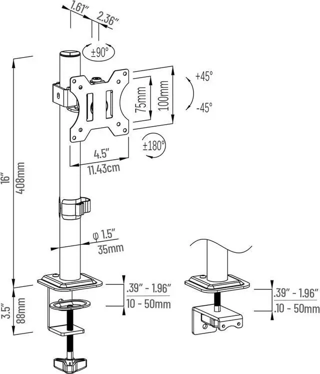 • VESA Compatible: Works with 75x75mm and 100x100mm mounting patterns