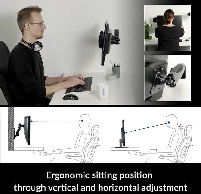 ERGONOMIC SEATING POSITION: Pay attention to your health, also in the office. So the W1-3D monitor arm improves your ergonomic seating position through ideal alignment