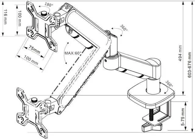 Optimized views with maximum vertical inclination of 60°; Horizontal inclination of 90°; ±180° rotation