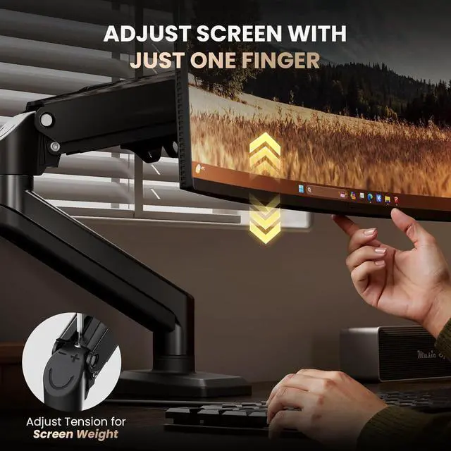 Effortless Adjustment with One Finger: Easily change the height and angle of your monitor with just one finger, thanks to the ergonomic design of this monitor desk mount. Experience enhanced comfort and visibility while working or gaming.