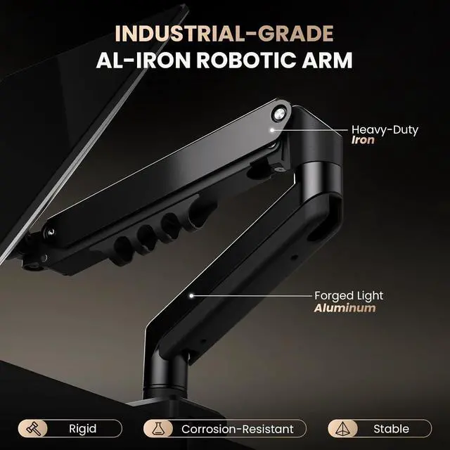 Industrial-Grade Construction: Made from durable AL-iron, this monitor mount is designed for longevity, making it an ideal choice for both home and office desk accessories. Count on its strength to securely hold your monitor.