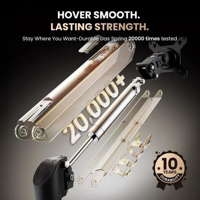 Hover Smooth Lasting Strength SIAGO single monitor arm with durable gas spring technology has been tested over 20,000 times, ensuring that your monitor stand for desk stays where you want it.