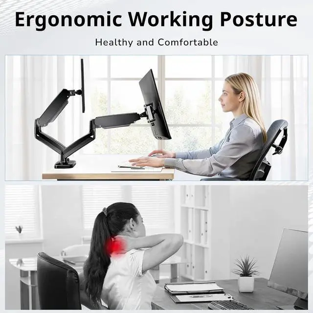Fully Customizable Positioning Easily adjust your monitors to the perfect viewing angle with smooth tilt (-45° to +90°), 180° swivel, and 360° rotation. The sturdy design prevents wobbling, tilting, or slipping, while promoting better posture to reduce neck and eye strain for more focused work.