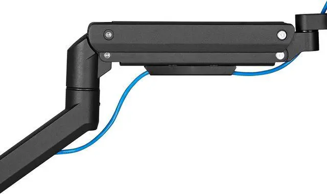 Heavy-duty gas spring design ensures effortless raising and lowering of monitors
