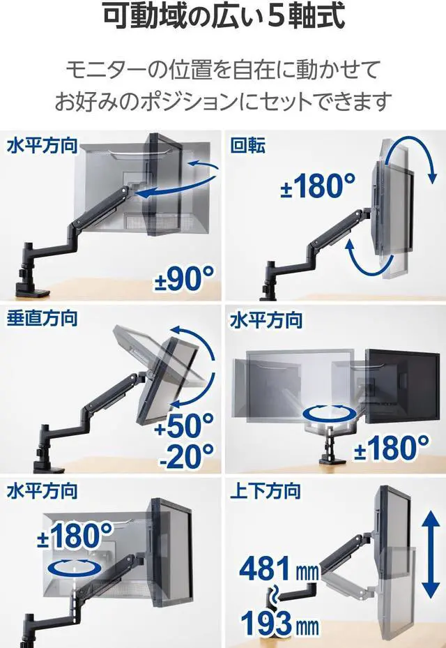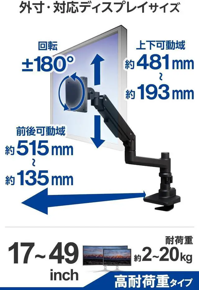 This arm type has a wide range of motion and is equipped with a stand that is easy to adjust the height