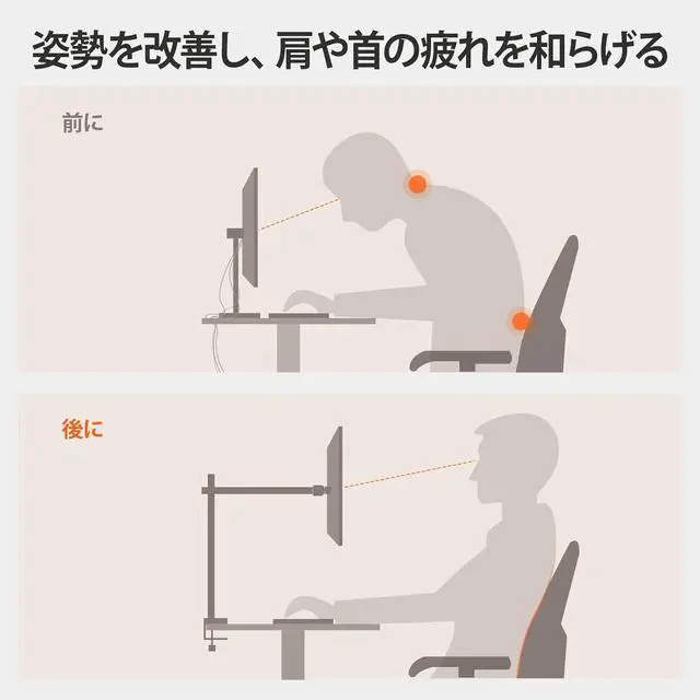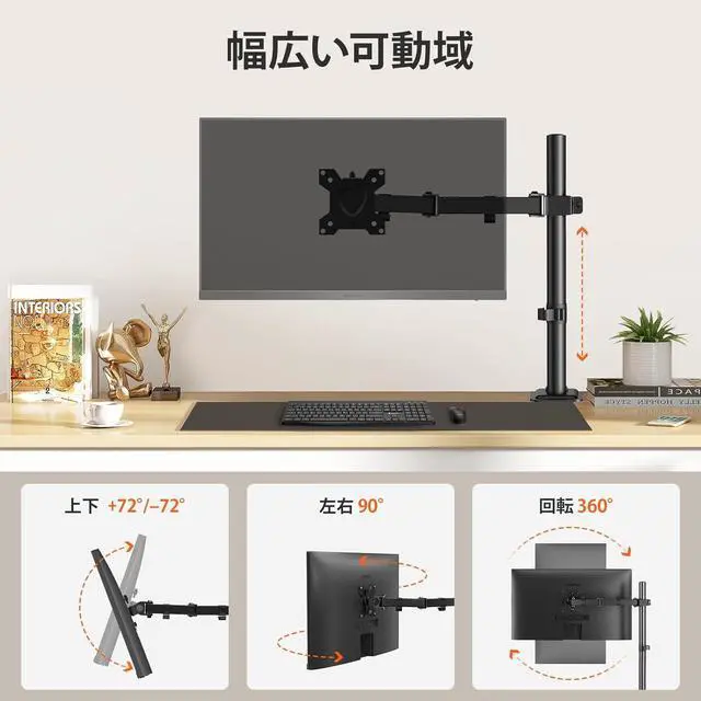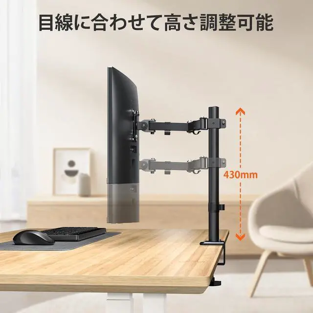 (Free Angle Adjustment) The computer arm stand can be adjusted from ± 72° tilt, 90° left and right, and 360° swivel, and the arm can be adjusted to a maximum length of 12.6 inches (320 mm) and a height of 16.9 inches (430 mm). Get the best viewing angle