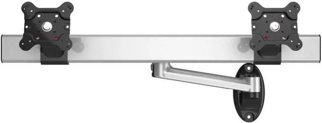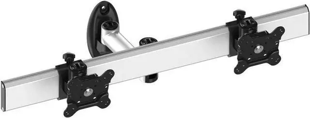 Wall mount type, supports two screens with average monitor width no more than 31.5". Dual monitor crossbar length: 31.5"; monitor can be placed at different spot of the bar.