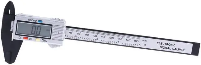 Specifications:Material: FiberglassColor: Silver Measuring Range: 0~150mm / 0~6"Resolution: 0.1mm, 0.01"Accuracy: 0.3mm / 0.011"Repeatability: 0.1mm / 0.01"Max. Measuring Speed: 1.5m/sec, 60"/sec Measuring System: Linear Capacitive Measuing System Displa: LCD Display Power: 1 * SR44/LR44 1.5V Button Battery (Not Included) Working Temperature: 0~40 Centigrade Degrees / 32~104 FahrenheitInfluence of Humidity: Not important under 80% of relative humidity.Product Size: Approx. 23.7 * 7.5 * 1.3cm / 9.3 * 3.0 * 0.5inProduct Weight: Approx. 54.1g / 1.9ozPackage Size: Approx. 28.5 * 10.2 * 2cm / 11.2 * 4.0 * 0.8inPackage Weight: Approx. 83.8g / 3.0oz Features:Large LCD display for easy reading.Zero setting at any position.Manual power on/off.Linear capacitive measuring system, accurate.Metric/inch units interchange.Suitable for measuring jewelry, paper, magnetic products.Suitable for measuring the inside diameter, outside diameter and depth.Basic Measuring Methods:1. Loosen the locking screw. 2. Switch the unit on with a press on "ON" button. The select the unit system needed by pressing "mm/inch" button. (Each time the button is pressed, inch and metric digits will be displayed alternatively) 3. Apply normal measuring pressure on slider to close the external measuring jaws. Then press "zero" buttom to reset the display to zero. 4. Can measure internal dimensions, also can measure external dimensions.
