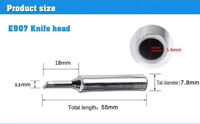 ELECALL E907 1pc Horseshoe Head New Replace Soldering Solder Leader-Free Solder Iron Tip Replaceable Soldering Welding Iron Pencil Tips The head shape of the Soldering Solder Tip 900M-T-K Iron is left and right skew Model:E907 Size: 7.63*7.63&55.95mm