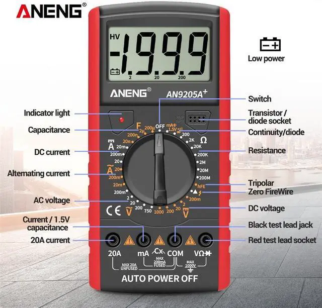 - Wide Application: DC voltage measurement, AC voltage measurement, DC current measurement, AC current measurement, capacitance measurement, resistance measurement, continuity detection, triode measurement, zero/fire wire testing and diode measurement.