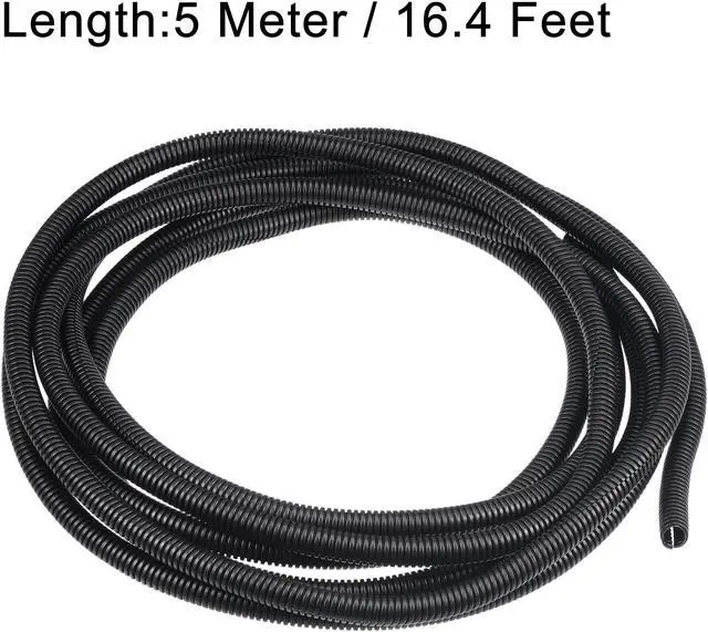 Description: This corrugated tube is made of PP, it protects your cables running from sunshine, abrasion and oil, etc.. Corrugated pipe design, flexible enough for your bending demands. The split wire loom tubing makes it easier for putting long cable in.