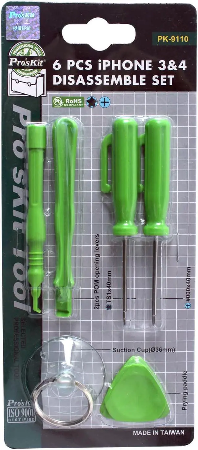 Contents: P2x40mm: OAL 91.5mm PH#000x40mm: OAL 91.5mm (POM) opening lever x 2 OAL 84.4mm , 88.7mm Suction cup 36mm Prying paddle 30.5mm x 30.5mm x 30.5mm New 5 point P2 size plus Philips#000 screwdrivers fit all the screws in the device Polyoxymethylene(POM) opening levers for leverage to open the housing easily and access the inside parts safely Miniature Suction Cup for pulling up iPod Touch and iPhone glass without leaving marks on device. Comes with a prying paddle for opening case without scratching the cover Excellent solution for opening Apple iPhone 3 & 4 or other devices.
