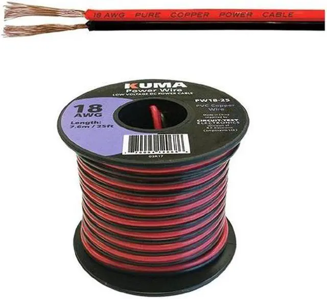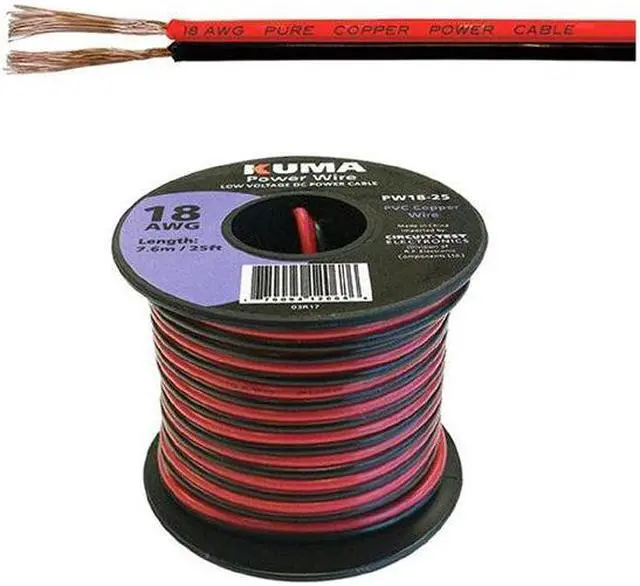 PW18-25 - DC WIRE 18AWG RED/BLK PAIR 25FT