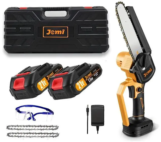 Equipped with two high-capacity 21V lithium batteries, you get an extended runtime of up to 60 minutes per charge, allowing you to swap batteries and work longer without interruption. Safety is prioritized with a lock switch, chain guard, and non-slip grip, ensuring secure and comfortable operation. This mini chainsaw is ideal for tree trimming, woodcutting, and various outdoor tasks around your home or garden. A carry case is also included for easy transport and storage.