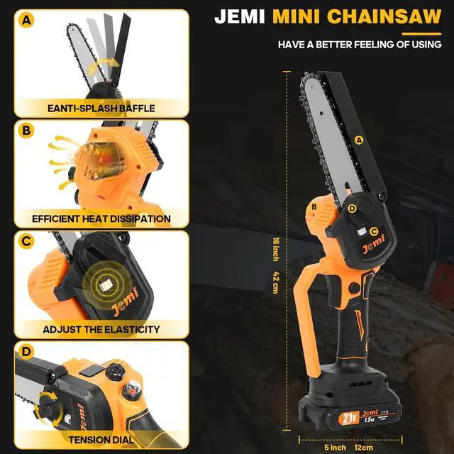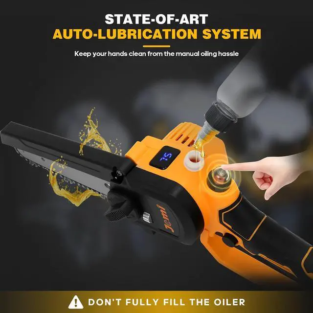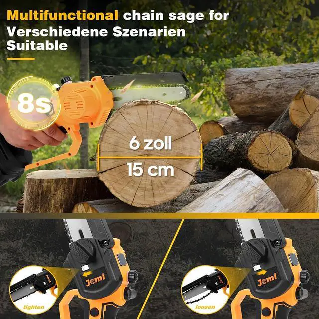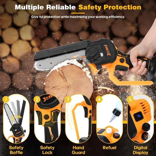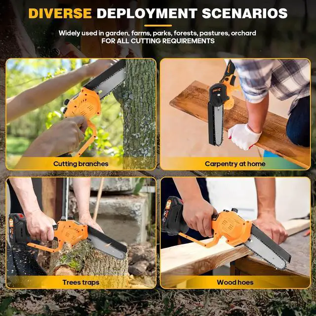 Experience powerful and convenient cutting with this 6-inch Cordless Mini Chainsaw. Featuring a high-speed brushless motor and an efficient 6-inch chain, this compact tool makes quick work of branches and logs up to 5 inches thick. Its lightweight design, weighing under 3 lbs, ensures easy handling for overhead tasks and navigating tight spaces.