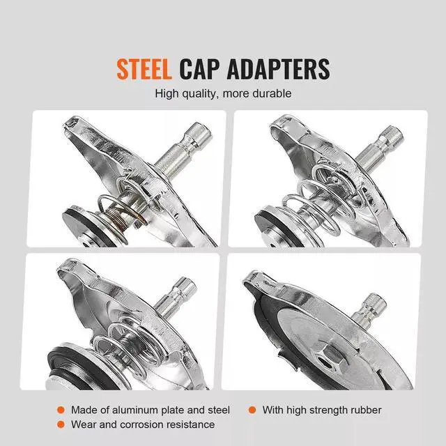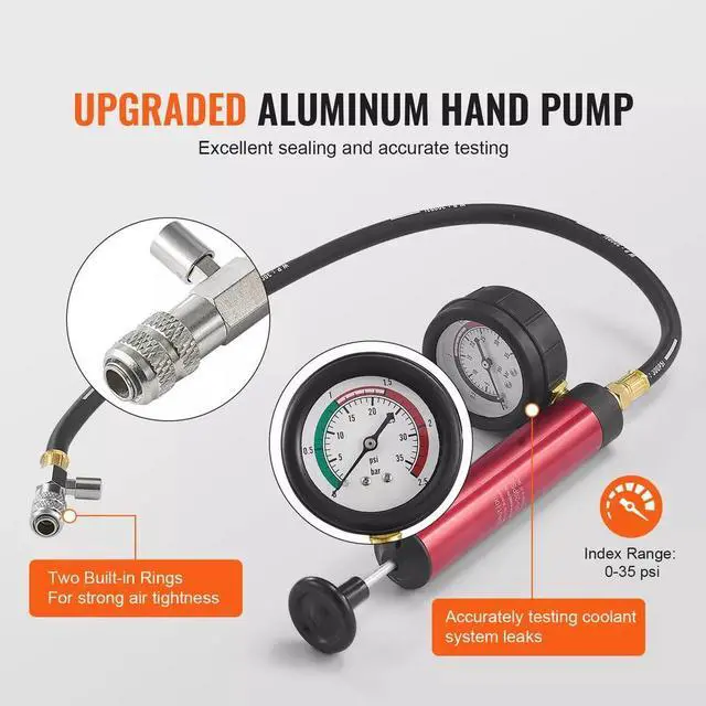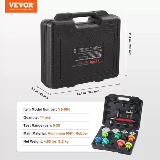 5. The compact and portable toolbox design includes precise slots to keep all accessories neatly organized, preventing them from shifting during transport. Experience an end to cluttered and disorganized tool storage with our 14-piece radiator pressure tester kit.