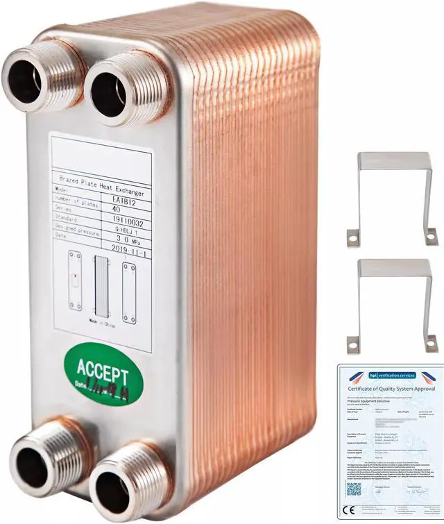 Robust Construction: This 40 plate heat exchanger features 316L stainless steel sheets, which are brazed together at the edges and the matrix of contact points for a reliable and rugged part to form a durable, integral piece that can withstand high pressure and temperature. Four thickened MNPT ports for your easier installation.