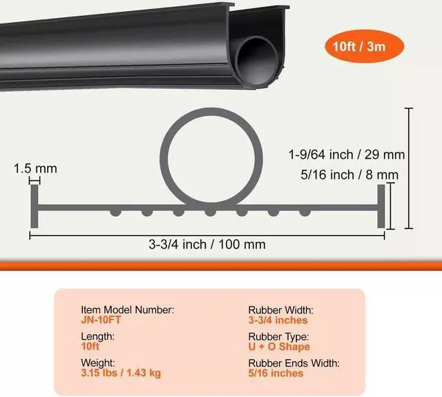 1. Our 10ft garage door seal boasts a smart U-shaped + O-ring combo design, effectively keeping your indoor spaces dry, clean, and comfortable. It's a defender against air, moisture, and dust. Plus, it reduces the chances of outdoor winds sneaking inside and improving insulation.