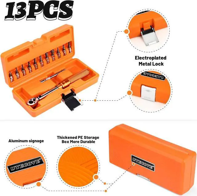 13Pcs Tool Kit Includes 1*1/4'' Drive Torque Wrench, 8*Hex: H2, H 2.5, H3, H4, H5, H6, H8, H10