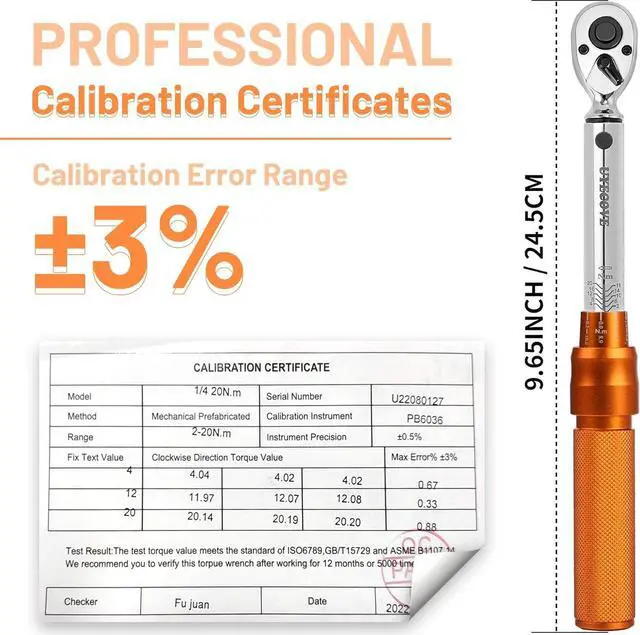 High Precision Dual Range Scale2-20N. m/ 17.7 -177IN-LB industrial grade torque wrench calibration error range ±3%. High contrast and dual range scale pre-calibrated. Scales graduated in M. M and IN. LB.