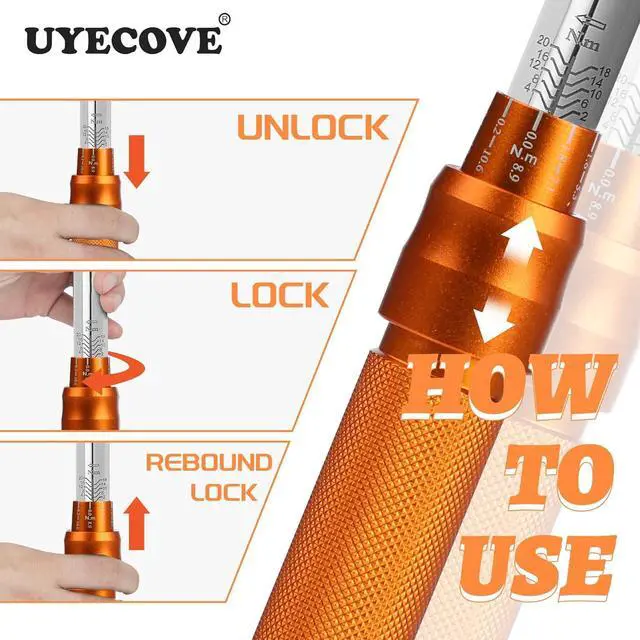 Safe and Simple Operation When the set torque value is reached, the wrench will emits Click sound to remind you to stop applying force to prevent overtorque damage to your items. Safety locking mechanism by turning the handle.