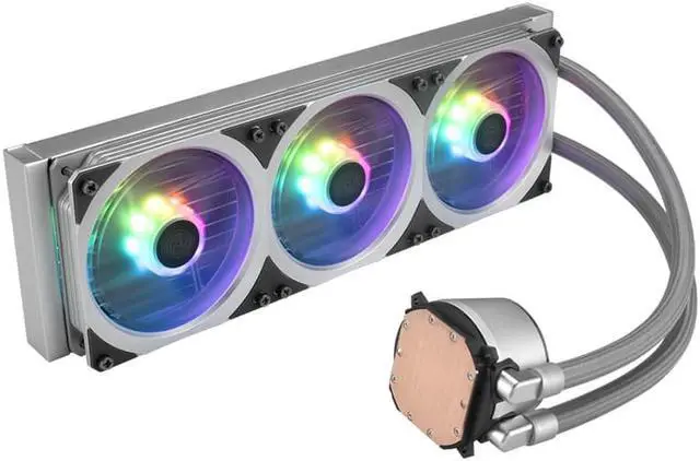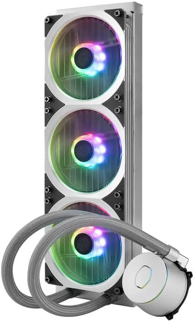 Cooler Masters MasterLiquid P360 is the new embodiment of enhanced performance cooling. The dual chamber pump has further honed flow and pressure to target hot spots for rapid and precise heat dissipation. Surface area of the copper base and microchannels have been calculated for a superior heat transfer ratio. Equipped with new Sickleflow fan blades with an interconnecting loop delivering high speed performance, the fan fine is tuned to produce an optimized sound output. It also integrates new Addressable Gen 2 RGB for support with major motherboard manufactures, customizable with both the included Addressable Gen 2 RGB controller and Cooler Masters MasterPlus+ software.