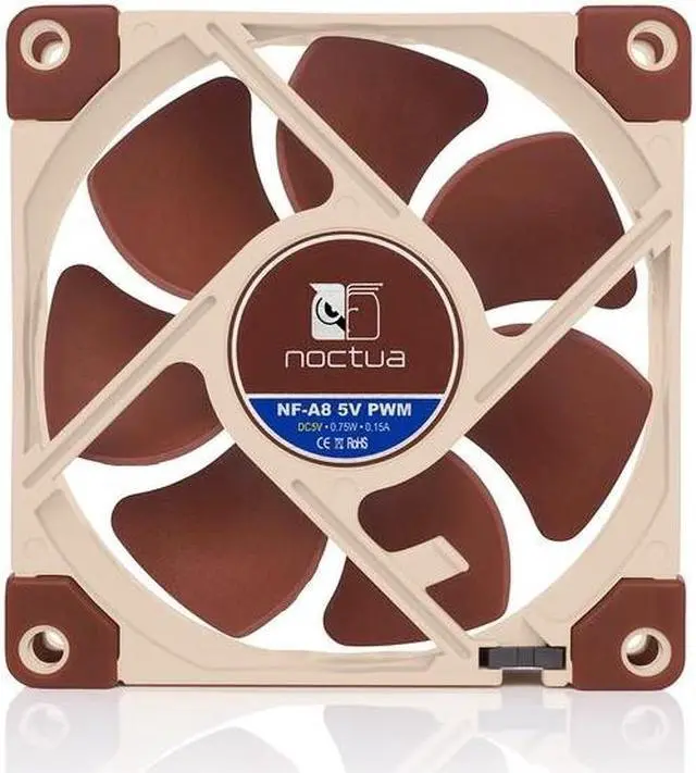 Details: The NF-A8 5V PWM is a PWM-enabled 5V variant of Noctua's award-winning premium-quality NF-A8 80mm fan. Featuring an AAO (Advanced Acoustic Optimisation) standard frame and sophisticated aerodynamic design measures such as Flow Acceleration Channels the NF-A8 is renowned for its superior performance and outstanding quietness of operation. Smooth Commutation Drive technology and Noctua's reference class SSO2 bearing guarantee superb running smoothness and excellent long-term stability. Topped off with the included USB power adaptor cable OmniJoin adaptor set and 6-year manufacturer's warranty the NF-A8 5V PWM is a premium choice for demanding 5V applications that require PWM control.