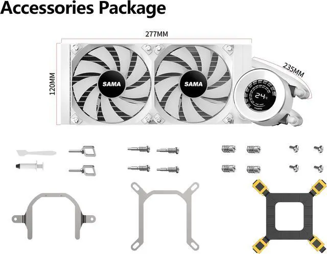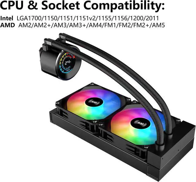 SAMA 240mm CPU Water Cooler With LCD Temperature Display ARGB 240 AIO All-in-one PC Liquid Cooler PWM Fans for AMD/Intel ATX/MATX Case Cooling System Black