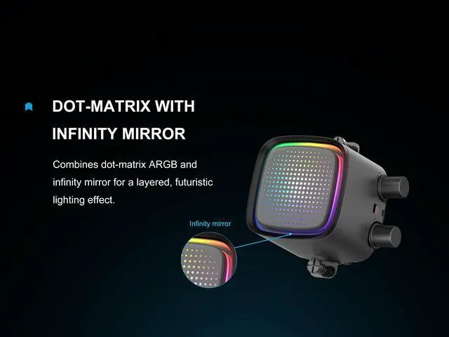 • Unique Dot-Matrix ARGB with Infinity Mirror Stunning visual centerpiece with layered ARGB effects, combining a precise dot matrix with depth-creating mirror for a futuristic lighting experience.
