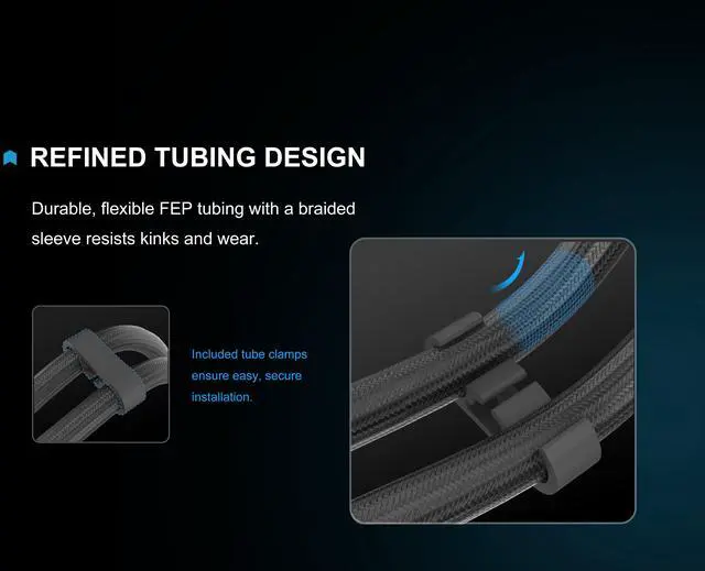 400mm FEP tubing with a braided sleeve delivers flexibility and durability while improving cable aesthetics. Daisy-chain fan connectors reduce clutter and simplify installation. The included Freezee thermal paste is a premium compound designed to maximize thermal conductivity.