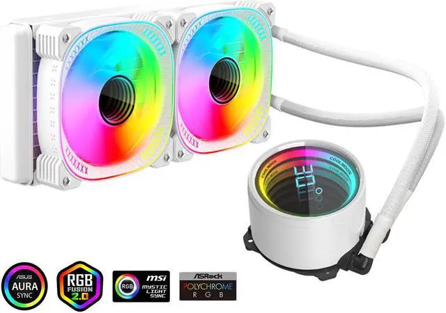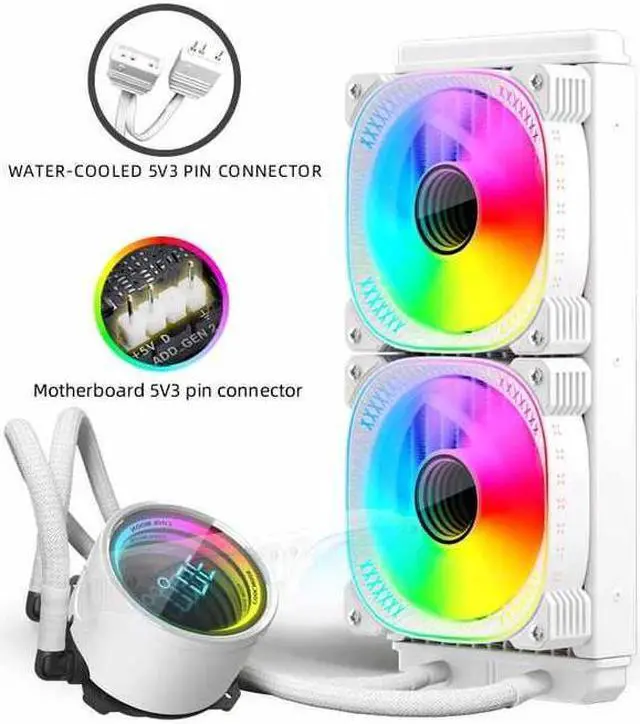CZQEPMB ARGB Liquid CPU Cooler,Water Cooler with Temperature Display, 240mm Digital CPU Mute Cooler ARGB & PWM Chassis Fan,LGA115X/1200/1700/1366/2011/2066,AM5/AM4/AM3/AM2/FM2/FM1/939,Gaming White