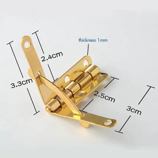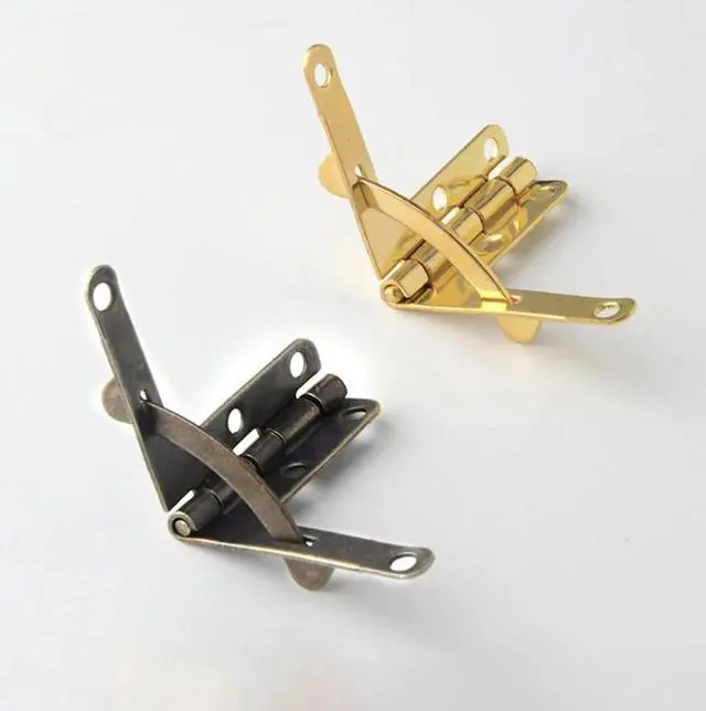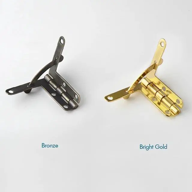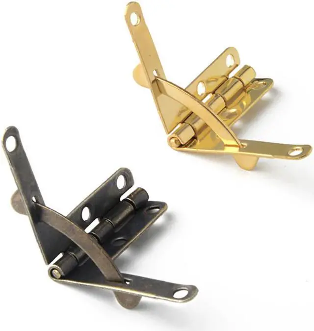2PCS/Lot Spring Hinge 90 Degree Angle Support Hinge Small Box Hinges for Jewelry Case Wooden Lid Door Close- Bright Gold, Bronze