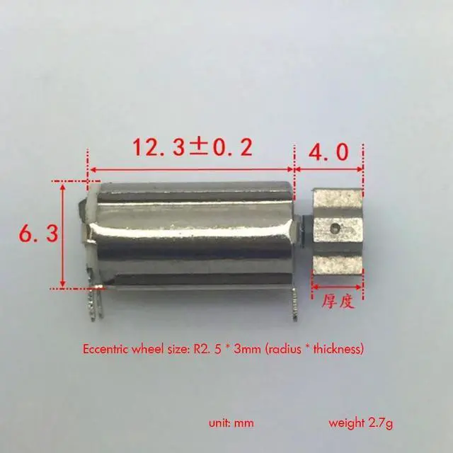 Pin Type Hollow Cup Vibration Motor DC 3V 220mA R 2.5 x 3mm Eccentric Wheel Strong Vibration Motor for Alarms, Remote Control