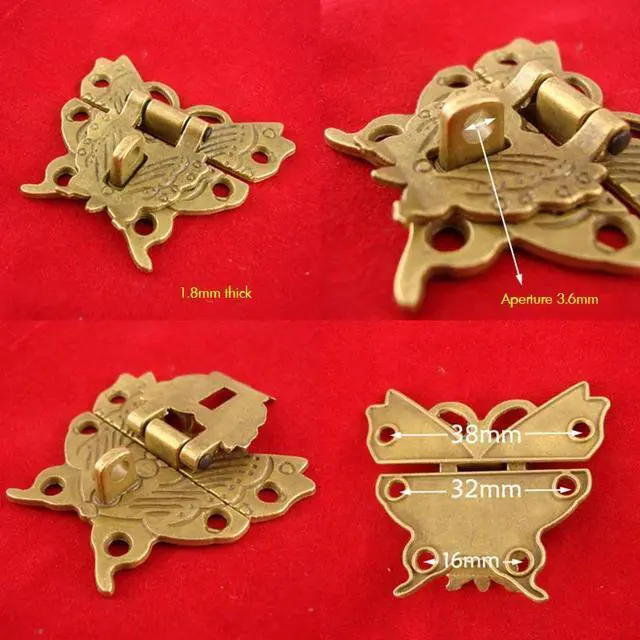 50x43mm Alloy Antique Butterfly Lock Latch Hasp Bronze Decorative Vintage Latch with Screws for Wooden Case Gift Jewelry Box