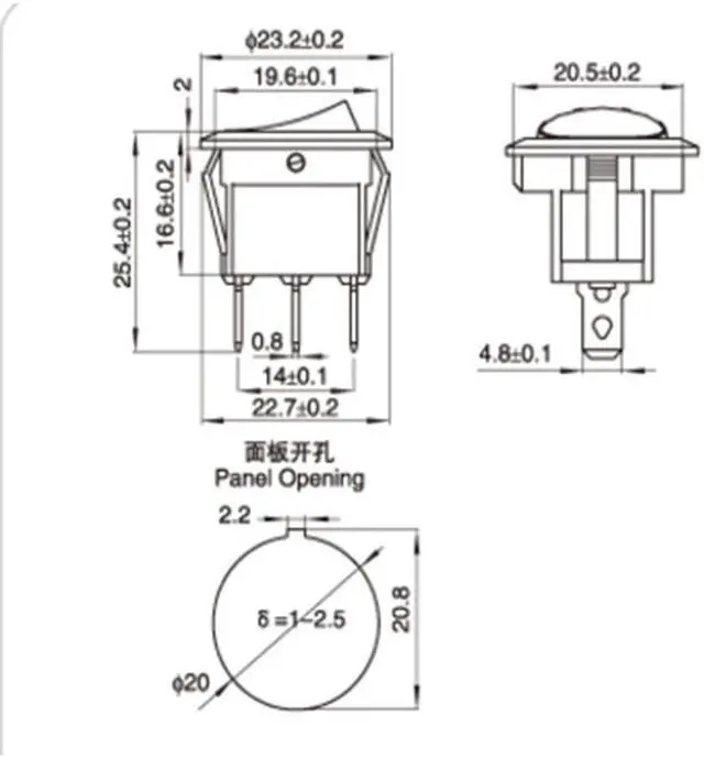 5Pcs 20mm Diameter Small Round Boat Rocker Switches Mini Round Black 3 Pin ON-OFF-ON Rocker Switch 6A 250V 10A 125V