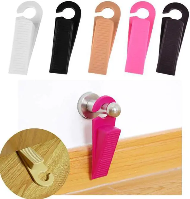 Rubber Door Stoppers - Security Door Stop Holder, Heavy Duty Flexible Door Holder with Hook, for 25-40mm Thickness Door
