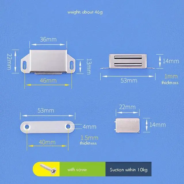 Magnetic Cabinet Door Catch, Stainless Steel Closet Wardrobe Catches with Strong Magnetic, 1.5mm Thickness Furniture Latch