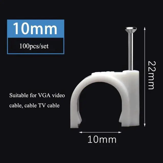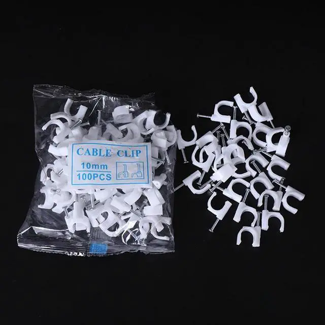 100Pcs/set 10MM Plastic Round Cable Clips Durable Line Card Clip For Home Office Factory Clamping Wire Cable Wiring Accessories
